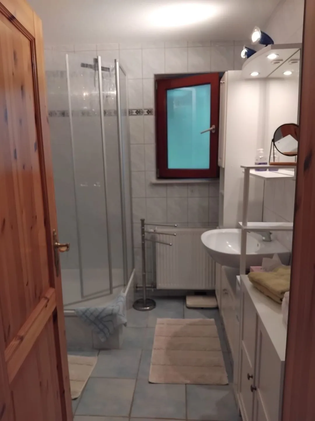 Das Tageslicht-Duschbad höherem Einstieg verfügt über ausreichend Ablageflächen und wurde lfd. renoviert.